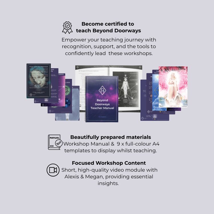 Led by Alexis & Megan, this module enhances your personal alignment with the alchemical technology of Beyond Doorways, while providing the knowledge, materials and ongoing energetic support to share it authentically. Step into this role with clarity and integrity, carrying forward the Transference Healing lineage and supporting the awakening of others through this sacred work.